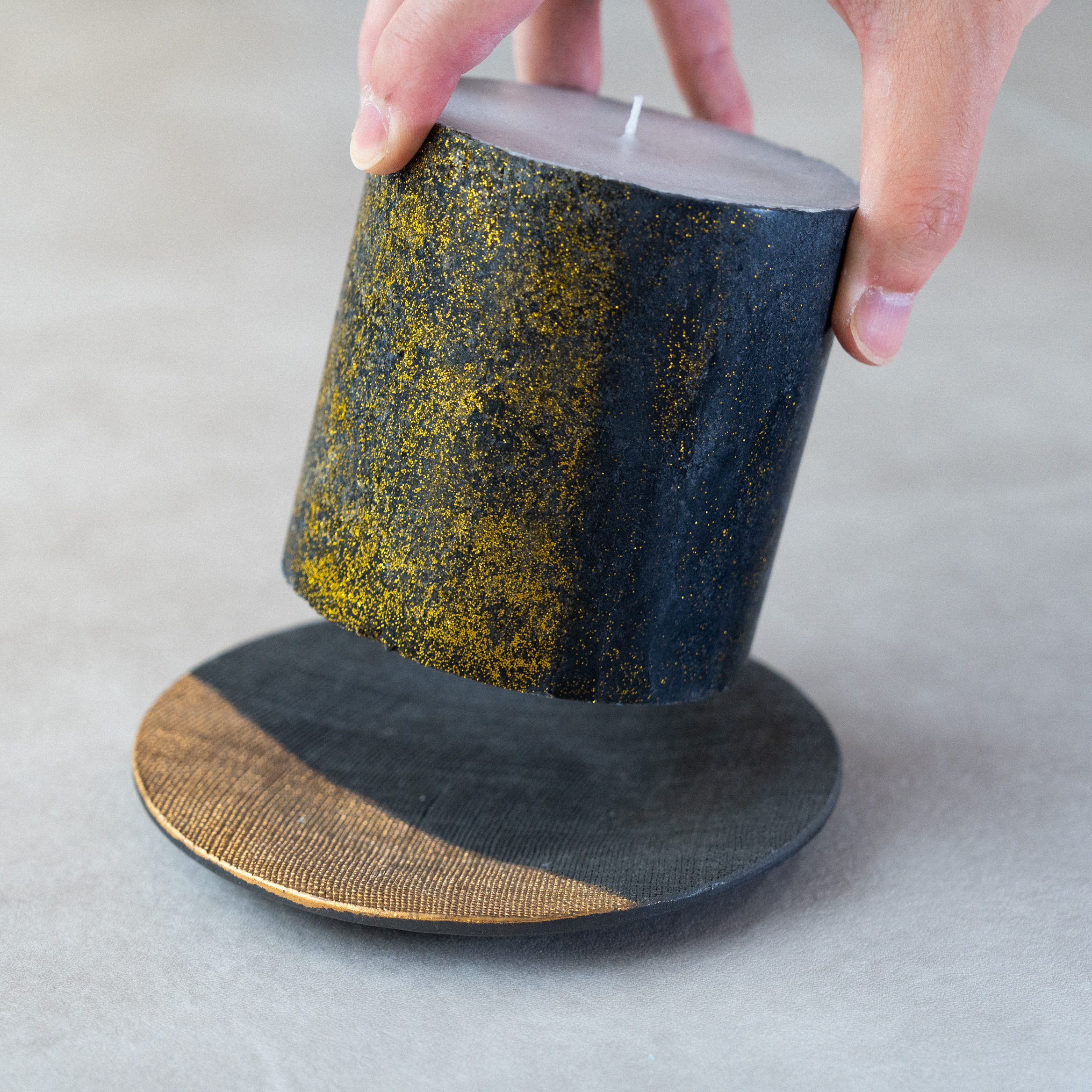 プレートのゴールドカラーに合わせて大胆な切り替えをキャンドルでも表現しました。ゴールド部分はラメを散りばめています。